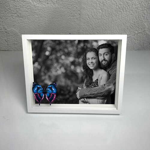 Hem masaüstü hem duvarda şık durur! Kelebekli çerçeveyle anılarınıza sıcak bir dokunuş katın. HLV-2025-BE